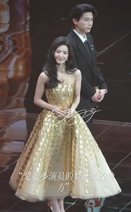 她以淡粉色珠绣礼服搭配低盘发亮相,肤白胜雪,气质清新,被赞“春日初绽的樱花精灵”。遗憾的是,行走姿态略显拘谨,含胸驼背问题突出,肢体语言欠缺舞台张力,未能撑起女艺人应有的开阔气场。